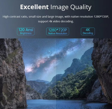 90% smaller than others and projects up to a 120-inch screen. Easily slips into your bag for movie nights anywhere.