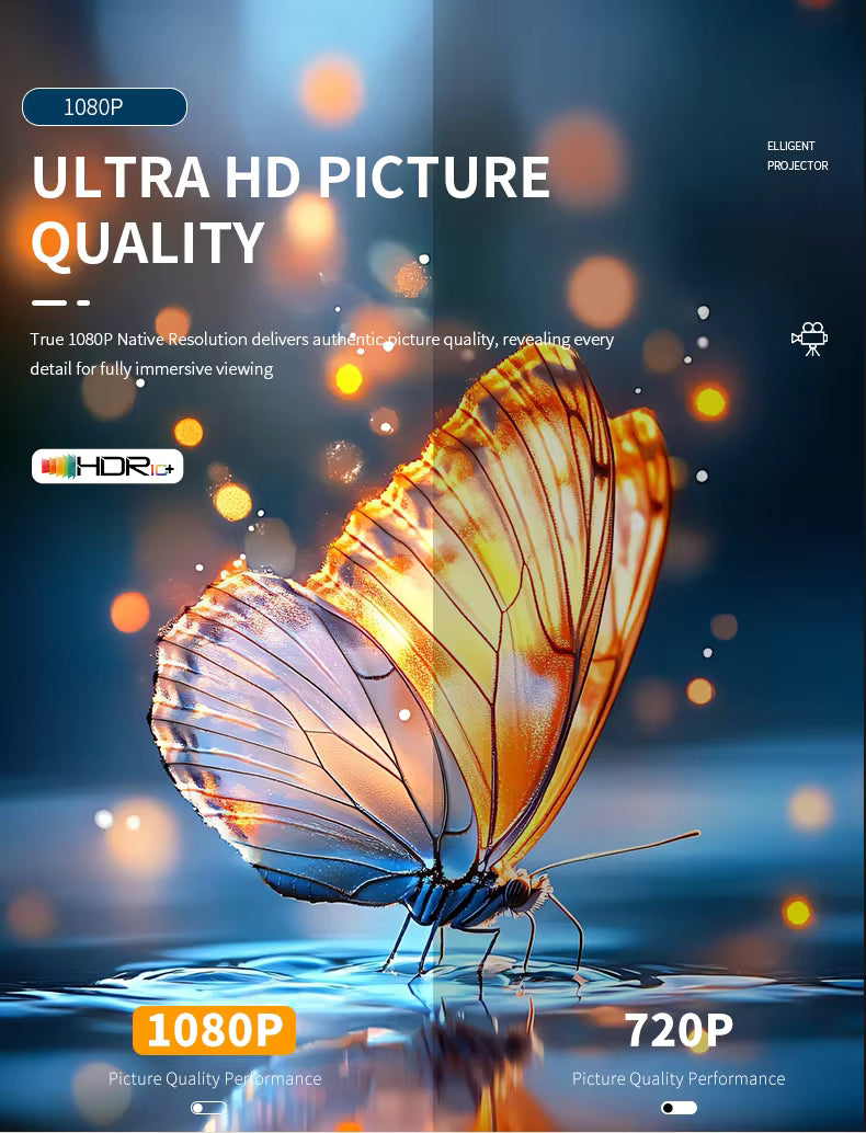 Bright HD Picture: Projects vibrant 720p HD visuals with up to ~2500 lumens brightness for clear images even in moderate lighting.